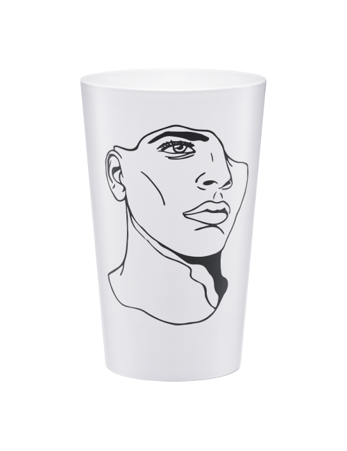 Eco60 IML 60 cl reusable cup, made of hard plastic. Perfect to serve a pint or half a pint of beer in pubs and major events with all the potential of four-color printing, with no limit of colors.